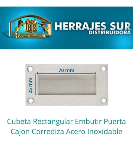 Cubeta Rectangular Embutir Puerta Cajón Corrediza Acero Inox